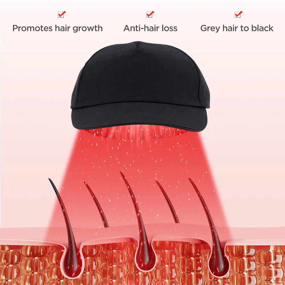According to research, light with different wavelengths has different effects on the skin. Near-infrared rays can promote skin metabolism, eliminate inflammation, improve hair follicle blood circulation, and protect hair.Light board material - The light board is composed of skin-friendly material PU and non-woven fabric, which is light in weight and easy to install in the hat.Multifunctional timing device - The hair growth device has 4 mode adjustment modes, 10-minute and 25-minute minute timing device, so that you can easily use it even when you are sleeping, without worrying about excessive physiotherapy exposure.