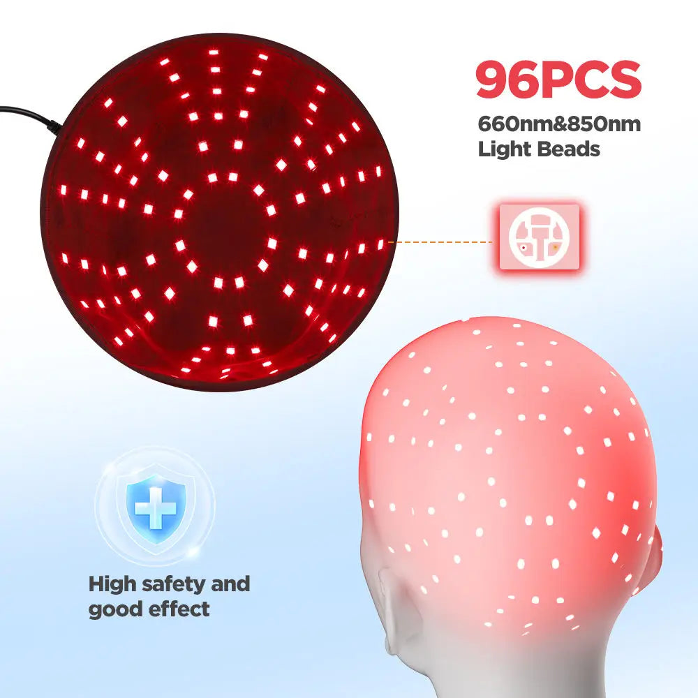 New 96Pcs Infrared LEDs 660nm&850nm Red Light Therapy Hair Growth Cap for Hair Regrowth Anti Hair Loss Relax Scalp Hair Care Hat